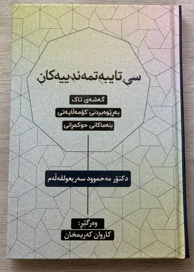 کتێبی: “سی تایبەتمەندییهكان” (گەشەی تاک، بەڕێوەبردنی کۆمەڵایەتی، بنەماکانی حوکمڕانی) نووسینی: پڕۆفیسۆر دکتۆر مەحموود سەریعولقەڵەم، مامۆستای زانستە سیاسییەکان.