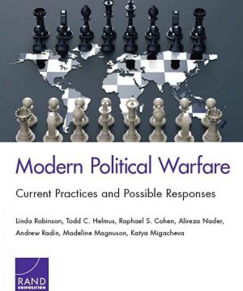 گرووپێک لە توێژەرانی بیرگەی ڕەند (Rand) لە ڕاپۆرتێکدا بە ناوی "جهنگی سیاسیی مۆدێرن: شێوازەکانی ئێستا و وەڵامە شیاوەکان" (٢٠١٨) لە شێوازەکانی جهنگی سیاسییان کۆڵیوەتەوە. ئەم توێژینەوەیە لهو شێوازانهی جهنگی سیاسی دەکۆڵێتەوە کە حکوومەت و ناحکوومەتەکان ئەنجامیان دەدەن. حکوومەتهكانی وەک ڕووسیا و ئێران و ناحکوومەتانی وەک داعش و تالیبان.
