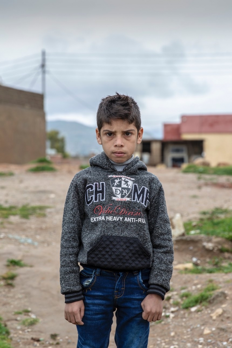 ئاڵان ئێزدۆ، منداڵێكى تهمهن 11 ساڵانهيه، بهرى چاوى چاڵ و قۆرتى قووڵى تێدايه، بهتهنيا له هۆدهى دايك و بابى له شهنگال ڕوودهنيشێ. شهنگال شارێكى ئێزدينشينه له باكوورى عێراقدا. يهكبێنه قاچ و قولى دهههژێنێتهوه و نيگايهكى خهمناكانهى ههيه. ناوه ناوه چهفييهكهى دێنێته سهر لا چاوهكانى و خۆى له برا بچووكهكهى ناگهيهنێ كه فهرامۆشى پێ دێ و چاوهڕوانه سهرنجێكى گچكهى بداتێ.